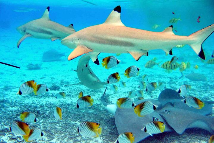 Start with an adrenaline filled Jet-ski tour around the entirety of Bora Bora’s mainland including two stops to cool off and swim. After this 2-hours activity, you’ll feel at ease to break for lunch on dry land. Back into the action after lunch for a 2½-hours Shark & Ray Safari tour. You’ll swim with the black tip sharks, tropical fish and stingrays. Bring the camera and don’t worry, your Tahitian guide is there every step of the way! At the end of the afternoon, with your fantastic Bora Bora experience behind, we’ll be sure to then take you back to your resort or to your resort’s shuttle base. Cheers !